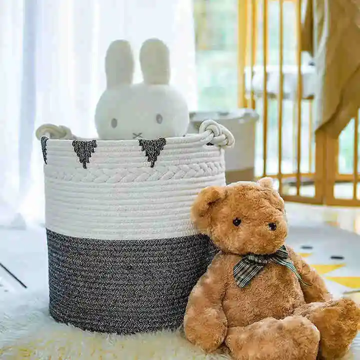Grand panier de rangement en corde de coton.